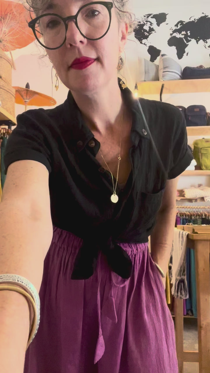 We love wearing these trousers high waisted with any of our tops: the Aarti Reversible Top/Vest, Krishna Button-Up, Simran Wrap Top, & Patan Top