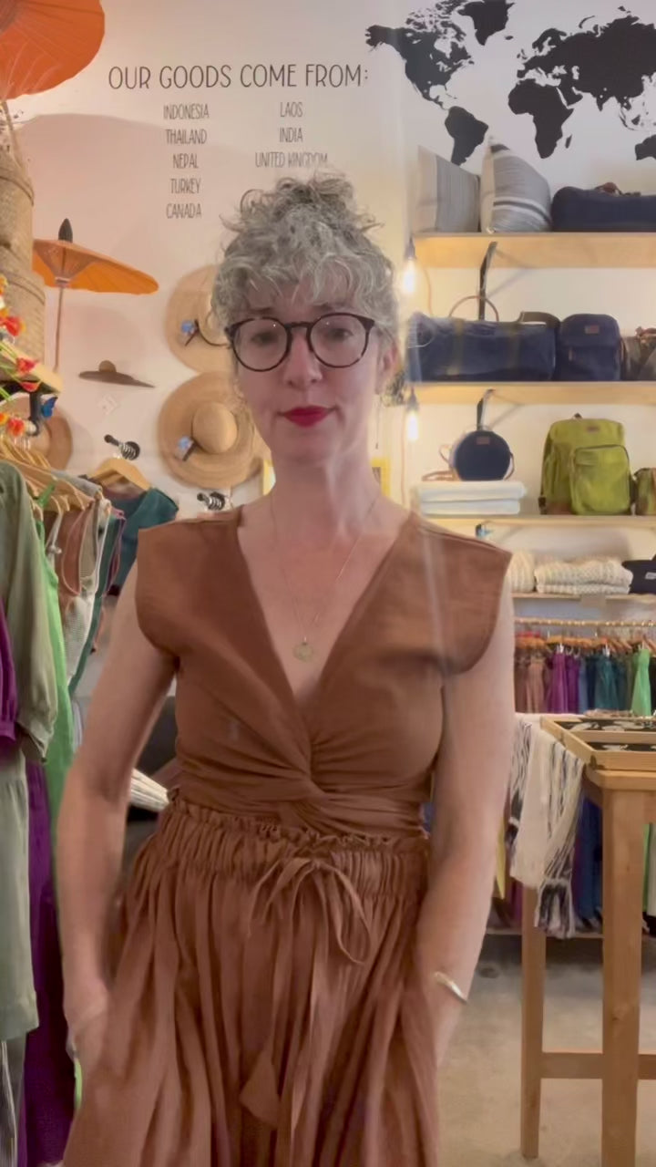 Our own, Dear Friend, body-con triangle top, thoughtfully designed in Austin, Texas. Ethically crafted in Kathmandu, Nepal. We've created this fabulously deep ocean teal color through a double dying technique, and can't stop wearing it! These easy tops can be worn tied in the front, wrapped for a more body con look, or however you like! They are made in 1 free size.